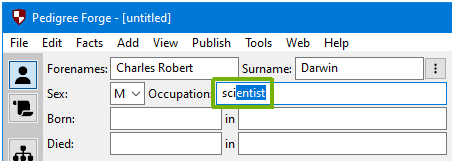If you want, you can add an occupation. Pedigree Forge has a database of common occupations, and will try and auto suggest for you.