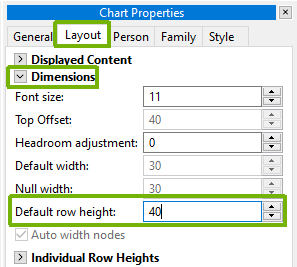 Whilst “Default row height” usually has no effect in birth brief mode, as it is a fixed layout, if the starting person’s siblings are being included, then the “Default row height” value can be changed to effect the spacing of the siblings:
