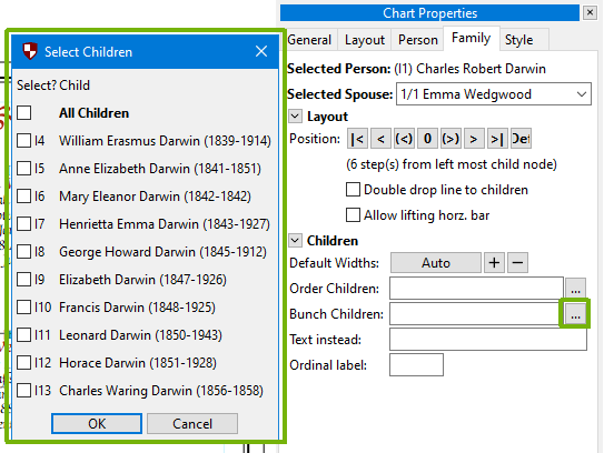 Click on the “Family” tab of the “Chart Properties" panel, which appears when in chart editing mode, and then click on the “…” button to the right of the “Bunch children” text box.