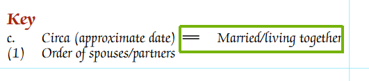 This might not always be appropriate, particularly with modern families. So rather than selecting “Never Married”, “Cohabiting” can be selected. This will show the “=” symbol is usual, but the key will be updated to indicate that the “=” symbol is also used for non-married couples.