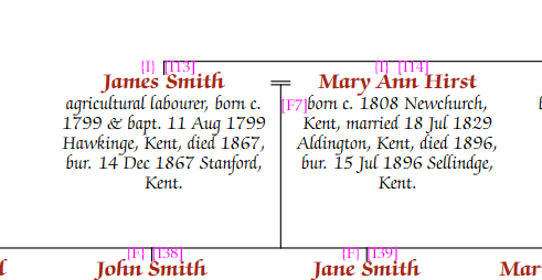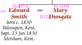 If there are no children AND the only information about the spouse is their name, then they are folded and appear in the same entry, for example:
