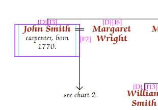 It is possible to stop a chart from the drop line of a parents. To do this, select the family from which you wish to show the text, and enter chart editing mode. From the “Chart Properties” panel, select the “Family” tab, then the “Text instead of kids” text box.