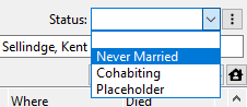 If a couple had never married, then select “Never Married” from the “Status” drop-down, next to the spouses name: