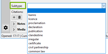 The use of the word “marriage” is a generic umbrella term that covers more than just traditional marriages. Subtypes of “marriage”, for example: “civil partnership”, “common law”, can be selected from the fact editing section: