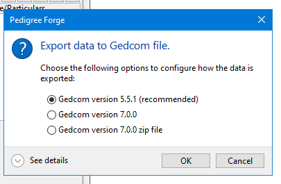 As at the time of writing (2025), most other programs support GEDCOM 5.5.1, and so is probably the best choice. However, GEDCOM 7, does offer more options, which can be useful—for example, the ability to have rich text transfer—and so might be better if you know that the program you are exporting to supports version 7. In reality, you might want to export as both (selecting different file names for the output), and experiment with the importing program.