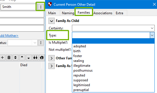 “Families” tab on the “Current Person Other Detail” dialog, accessed from the ⋮ button, located next to the