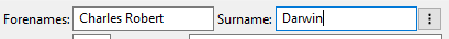 By default, Pedigree Forge allows names to be entered as Forename(s) in one field, then a surname in the next: