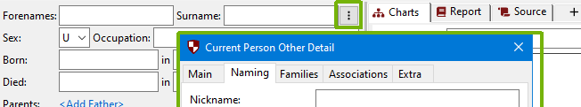 More naming options can be found on the “Current Person Other Detail” dialog, accessed from the ⋮ button, next to the name: