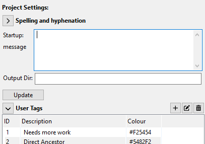 Pedigree Forge allows configurations for a particular project, for example, adding recognised places and tags. These are available on the “Project Settings” panel, which is accessed from the “Cog” icon, in the bottom left-hand corner of the Pedigree Forge main window: