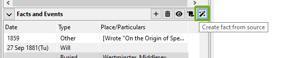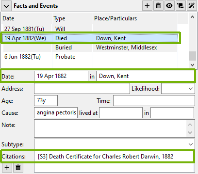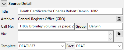 The following will walk through the same source (Charles Darwin’s death) as shown in the working with sources section, but taking the “Source first” approach.