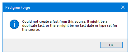 Sometimes, the creating a source from a fact will fail, and you will get an error message such as this: